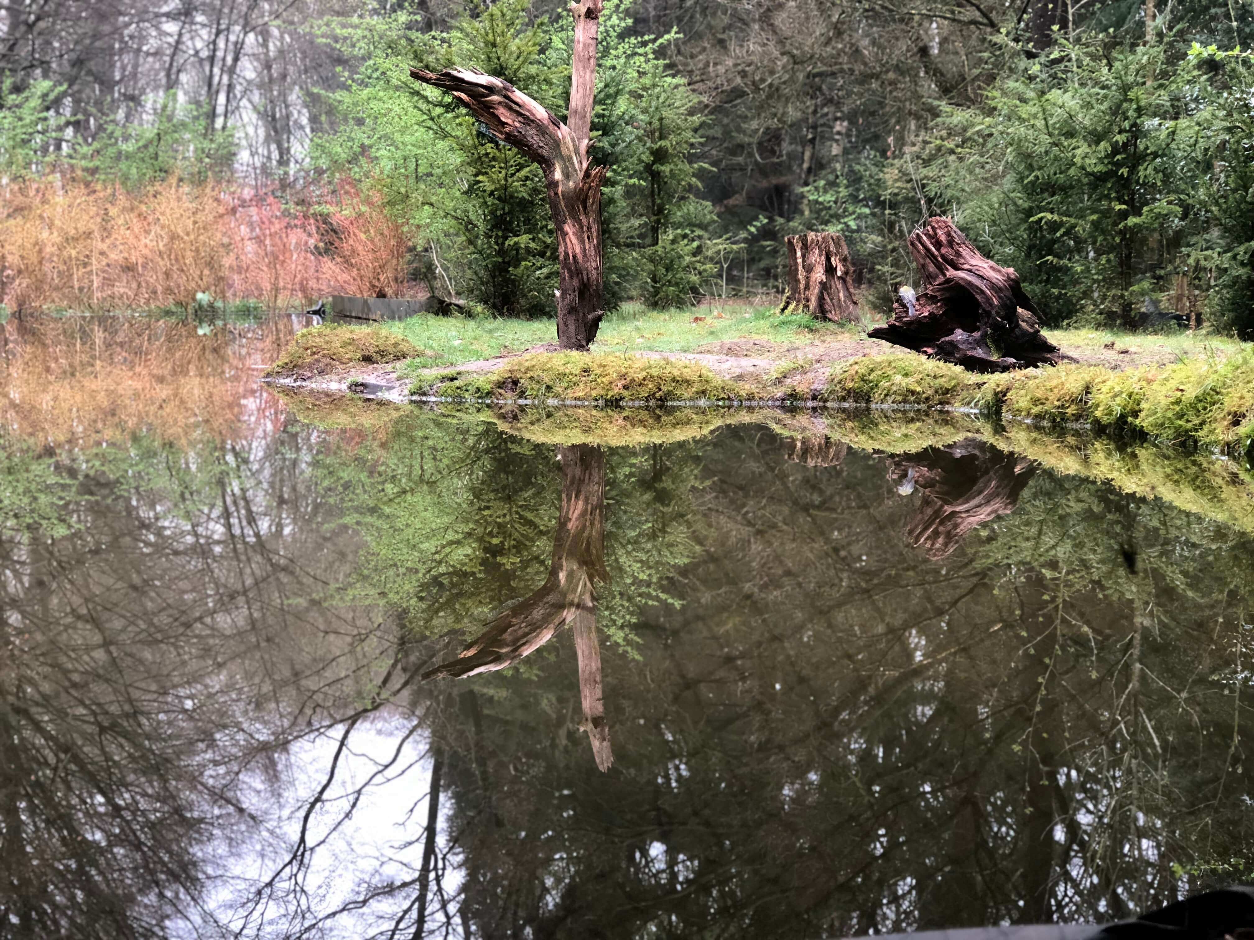 Als je gek bent op eekhoorns dan is deze hut zeker een bezoek waard. Voor de hut is een gigantische vijver aangelegd met ongeveer in het midden een ondiep gedeelte. In deze doorwaadbare plek kun je een aantal hazelnootjes in gooien als voer voor de eekhoorntjes. Tezamen met de mooie achtergrond, de steeds veranderde lichtinval, de weerspiegeling van het water en de oranjeachtige kleur van de eekhoorntjes levert dit prachtige beelden op.