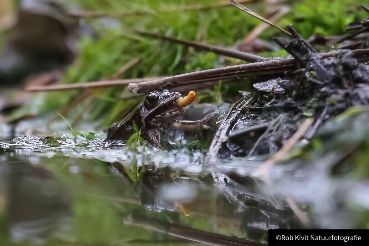Vooraf was al bekend dat bij deze hut je geduld op de proef kon worden gesteld en dat klopte inderdaad best wel. De gehele ochtend hebben wij slechts een merel en een pimpelmees gezien. Wel waren er veel kikkervisjes aanwezig; ook erg leuk om te fotograferen trouwens. In het begin hadden we het niet eens door omdat ze zo klein zijn maar kwamen er pas achter toen ze begonnen te bewegen?