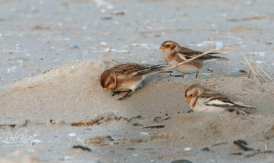 Deze keer lopen struinen op het strand naast de Zuidpier in IJmuiden naar sneeuwgorzen. We hadden ze al vrij snel gezien maar ze waren ook zo weer weggevlogen. Het zijn kleine vogels en met windkracht 5 waren ze zo weer verdwenen. Daarnaast zijn ze op hun rug goed gecamoufleerd zodat ze in het gras moeilijk te localiseren zijn. Best lastig dus om een goede foto te maken. Het ging om een groepje van ongeveer 10 sneeuwgorzen die telkens door de harde wind iedere keer ergens anders op het strandneerstreken. Uiteindelijk toch nog gelukkig een paar foto's kunnen maken. Verder waren de zwerm telkens opvliegende drieteenstrandlopers langs de pier indrukwekkend om te zien. De Zuidpier konden we vanwege de harde wind niet uitlopen omdat de golven over de pier waaiden. Helaas dus geen Jan-van-genten kunnen zien. Het was koud en er waaide een harde wind maar af en toe brak toch nog even het zonnetje door. Was weer een leuke dag en kom zeker dit jaar nog terug maar dan hopelijk met minder wind.