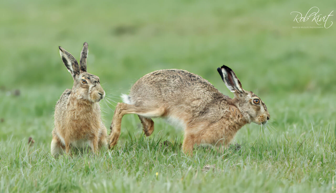 Vechtende hazen en meer bij vogelhut Weidevogelhuijs