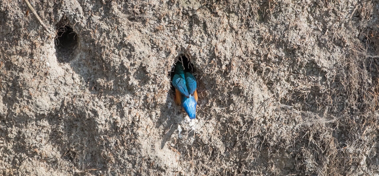 Ik wist dat ze er zaten maar geen tijd gehad om er langs te gaan maar nu eindelijk dus wel en dat op 5 minuten van mij huis. Het gaat om een paartje ijsvogels die een nestje hebben gebouwd in een stronk van een omgewaaide boom. De paring en visoverdracht heeft al een paar weken terug plaatsgevonden en helaas gemist maar toch erg leuk om die mooie vogeltjes weer te zien.