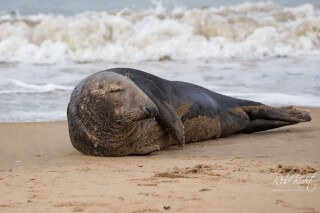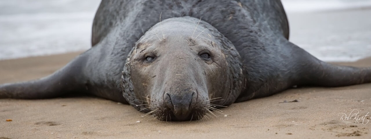 Wat een imposant beest is dit zeg en om deze zeehond van dichtbij maar op gepaste afstand te kunnen fotograferen. Na een reeks foto's te hebben geschoten hebben we de zeehond verder met rust gelaten en zijn langzaam terug naar de auto gelopen.