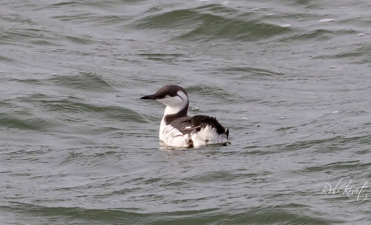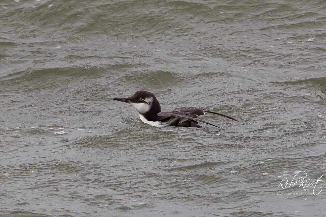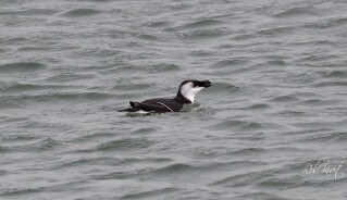 Na een tip van een vogelaar bleken er ook Alken aanwezig te zijn. Uhh Alk? Nog nooit eerder van een Alk gehoord laat staan gezien dus weer een stukje wijzer geworden. En inderdaad zagen we er vanaf de dijk een paar zwemmen. Deze beide vogels vond ik persoonlijk lastig van elkaar te onderscheiden en helemaal vanaf de pier maar als je goed kijkt en helemaal op je computer thuis dan zijn het echt twee verschillende vogels.