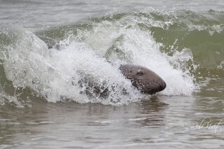 Bij de haven aangekomen zagen we op afstand de zeehond nog steeds op het strand liggen en ook de Zwarte Zwaan zwom gelukkig nog vrolijk rond in de haven dus nog leuke foto's kunnen maken ondanks het wat mindere en harde licht. Op het strandje aangekomen leek het er even op dat de zeehond terug naar de zee wilde zwemmen maar hij kwam gelukkig weer terug om vervolgens lekker te luieren op het zand.