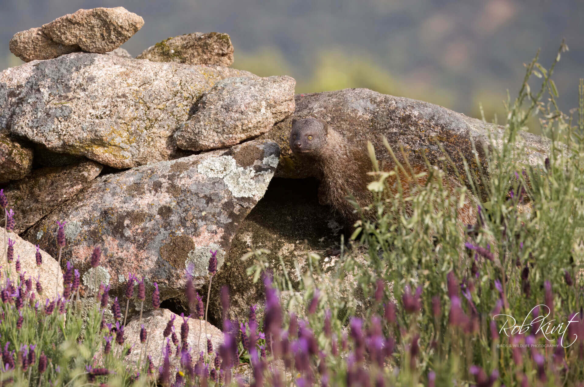 Vandaag naar de hut geweest voor het fotograferen van keizerarend en mongoose. Een mooie locatie aan de rand van een berg met voor de hut begroeiing van lavendel en bermheide maakte het plaatje helemaal compleet.