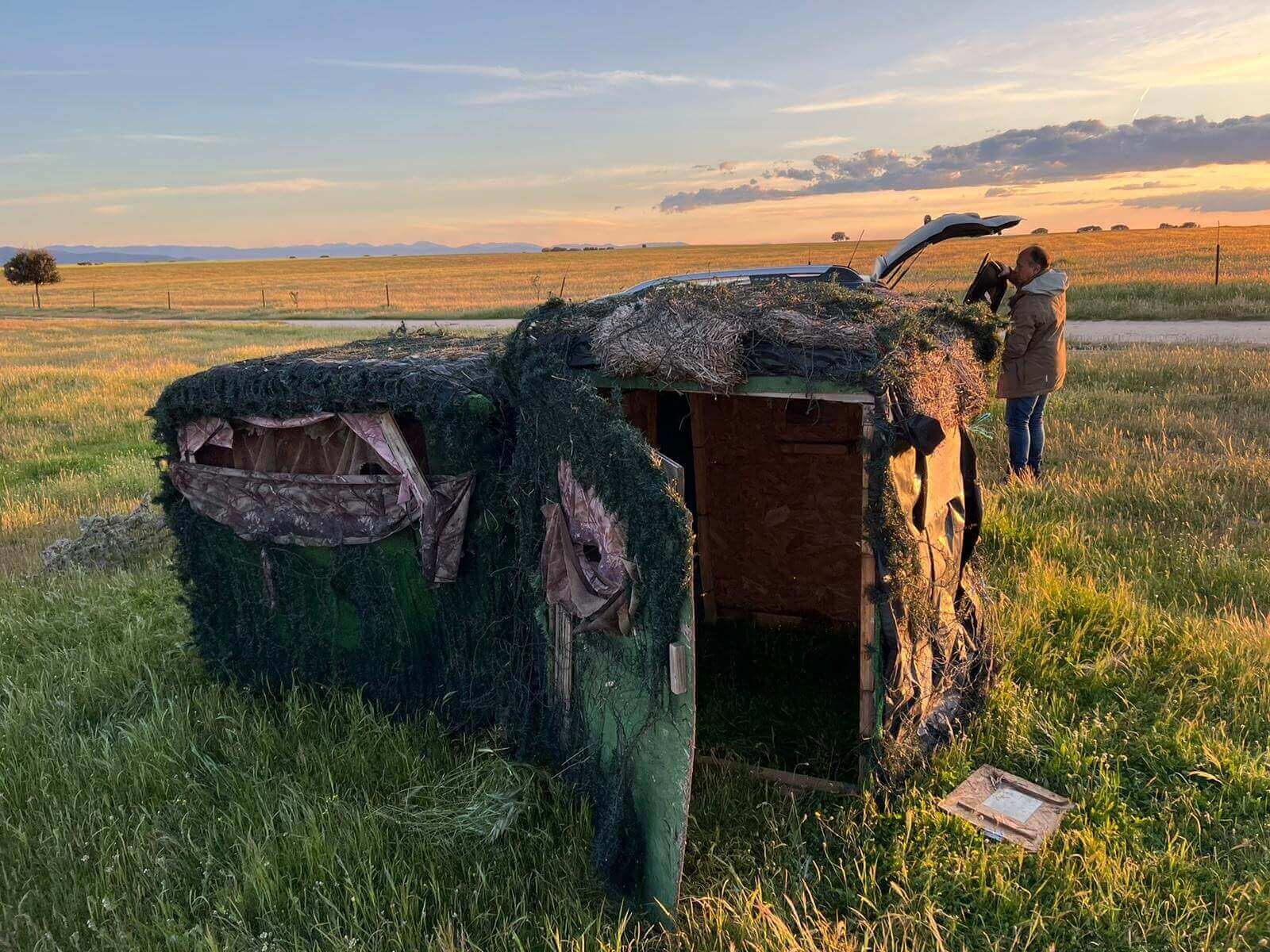 Advies is om de trappen eerst binnen het bereik van je telelens te laten komen en dan pas je lens door het luikje steken. Doe dit voorzichtig anders gaan de trappen nog verder weg staan van de hut. De hutten zijn gelegen in een bergachtig gebied ter hoogte van Calera y Chozas in Toledo. Vanuit het meeting point is het ongeveer 10 minuten lopen naar de locatie. Je zit ongeveer van 06:00 ‘s ochtends tot 10:00 ‘s avonds in de hut. Een erg lange zit in zo’n klein hutje. Dit alles ter voorkoming van verstoringen voor de grote trappen. Pas als de laatste trap is verdwenen zal de hutverhuurder je pas ophalen. Vanaf de auto tot de 1ste hut is het ongeveer 500 meter lopen en tot de volgende hutten zo’n 100 meter.