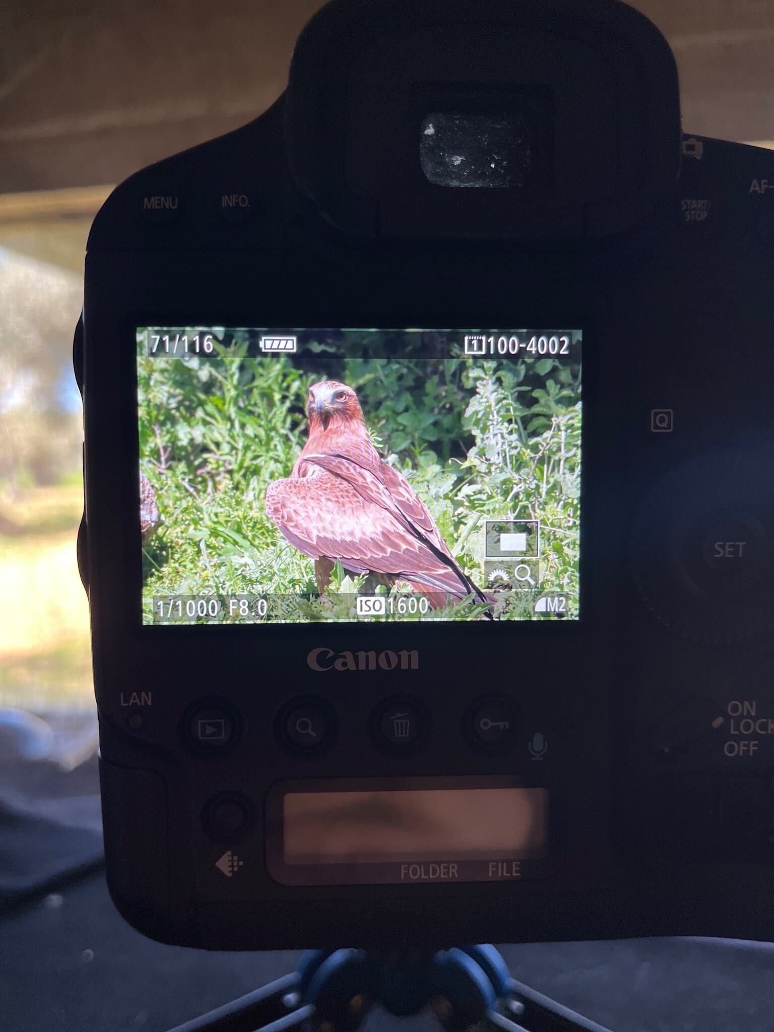 Eenmaal in de hut liet de mongoose zich al snel zien maar was ook zo weer verdwenen 🤣 Het waren er 2, een donkere en lichtbruine maar erg moeilijk om ze goed te fotograferen omdat ze zo snel zijn. Ik heb daarom slechts 2-3 foto’s kunnen maken van een van beiden helaas. De keizerarend was gelukkig wel goed te fotograferen. Helaas wel met iets teveel schaduw maar toch nog enkele redelijke vlucht foto’s kunnen maken. In tegenstelling tot vorig jaar in Monegros bleek het deze keer het mannetje te zijn. Een stuk kleiner dan het vrouwtje maar mooi om te zien. De keizerarend bleef gelukkig langer zitten dan de Mongoose dus tijd genoeg om foto’s te maken.